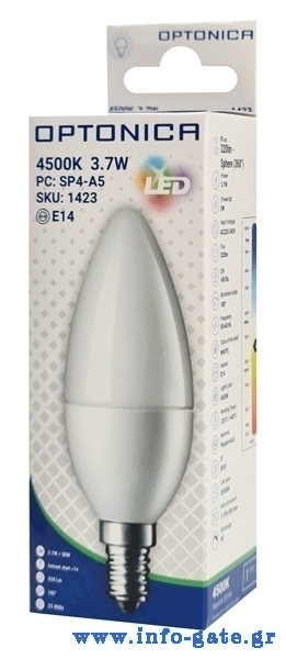 OPTONICA LED λάμπα candle C37 1423, 3.7W, 4500K, E14, 320lm