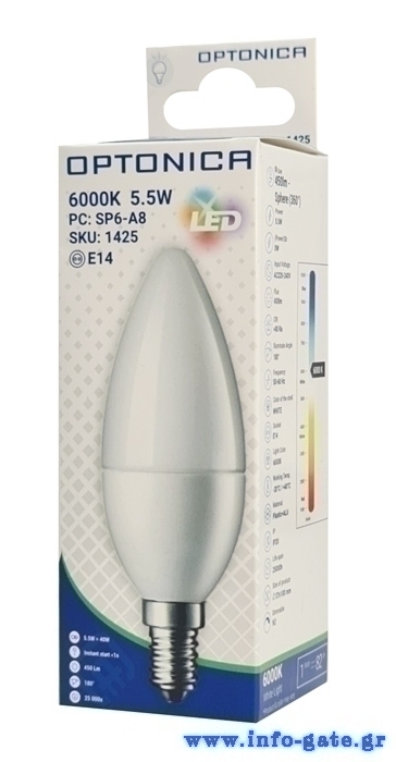 OPTONICA LED λάμπα C37 1425, 5.5W, 6000K, E14, 450lm