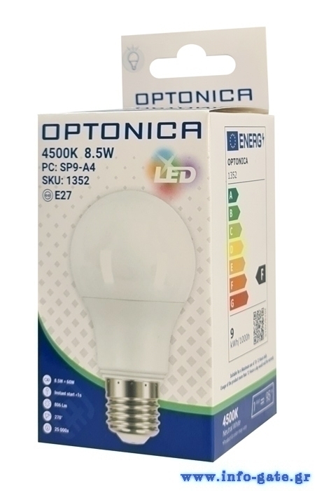 OPTONICA LED λάμπα A60 1352, 8.5W, 4500K, E27, 806lm