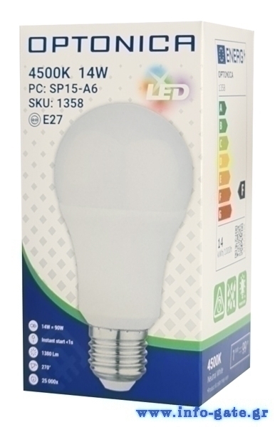 OPTONICA LED λάμπα A60 1358, 14W, 4500K, E27, 1380lm