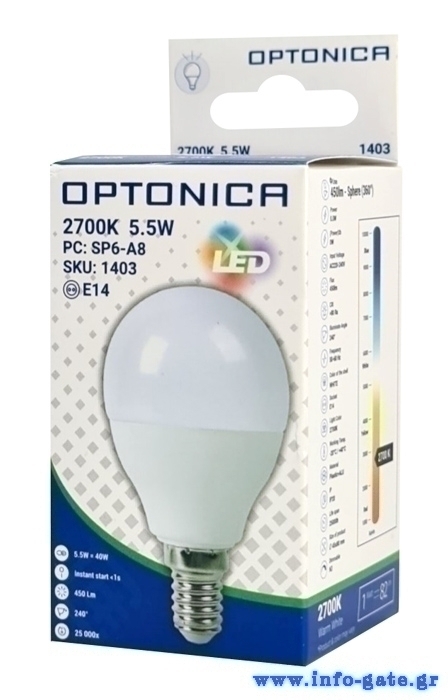 OPTONICA LED λάμπα G45 1403, 5.5W, 2700K, 450lm, E14