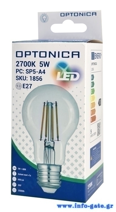 OPTONICA LED λάμπα A60 1856, Filament, 5W, 2700K, 600lm, E27