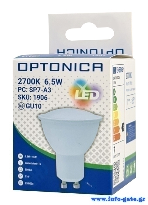 OPTONICA LED λάμπα spot 1906, 6.5W, 2700K, 550lm, GU10