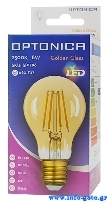 OPTONICA LED λάμπα A60 Filament 1796, 8W, 2500K, E27, 700lm