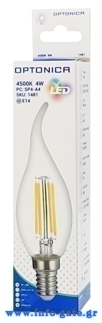 OPTONICA LED λάμπα Candle C35T Filament 1481, 4W, 4500K, E14, 400lm