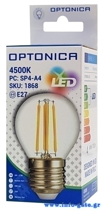 OPTONICA LED λάμπα G45 Filament 1868, 4W, 4500K, E27, 400lm