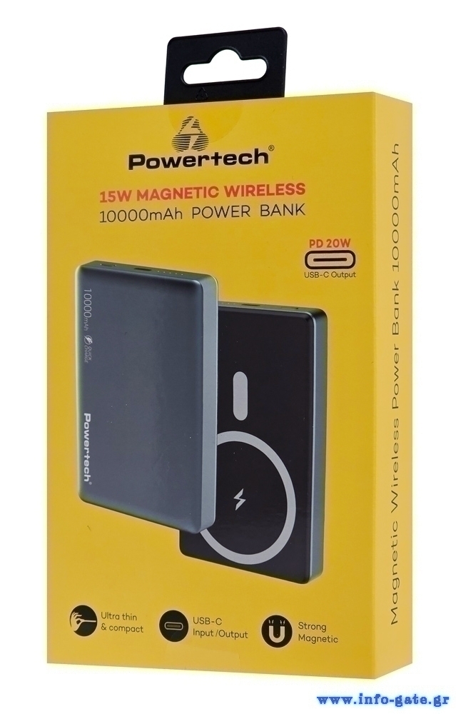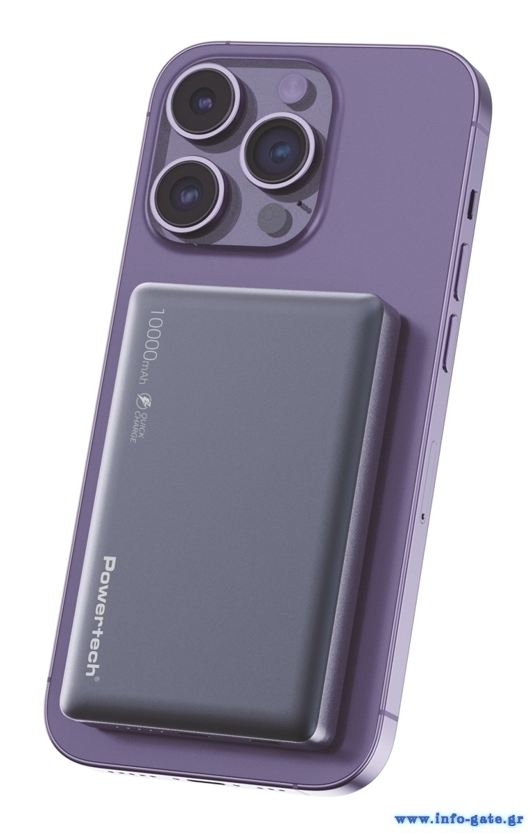 POWERTECH power bank PT-1377, 10000mah, magnetic wireless, 20W, γκρι