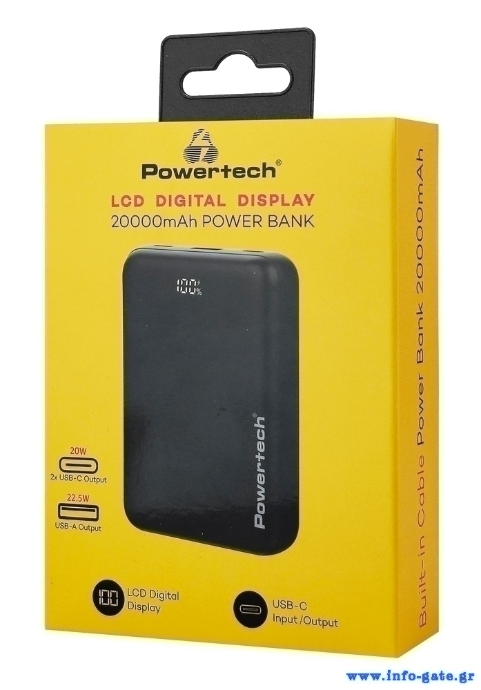 POWERTECH power bank PT-1503 με οθόνη, 20000mah, 22.5W, μαύρο