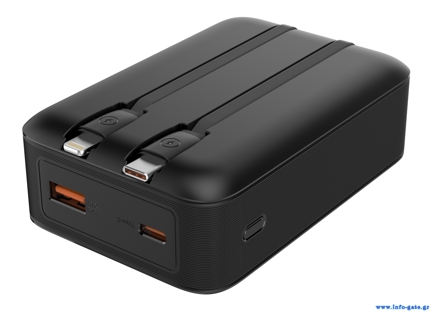 Διαθέτει 1x USB και 1x USB-C θύρες εξόδου αλλά και 2x ενσωματωμένα καλώδια εξόδου USB-C και Lightning. Υποστηρίζει μέγιστη απόδοση φόρτισης 22.5W και εξοπλίζεται με ψηφιακή οθόνη για την ένδειξη κατάστασης της μπαταρίας.