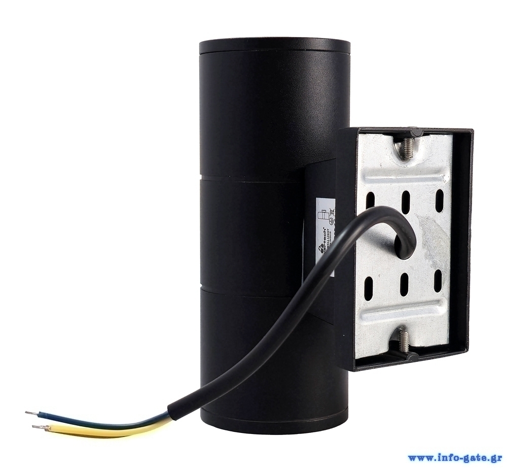 POWERTECH φωτιστικό τοίχου HLL-0190 για 2x GU10 λάμπες, μεταλλικό, IP65, μαύρο