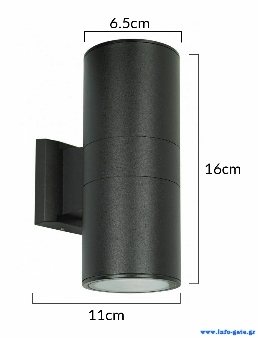 Κομψό και ανθεκτικό φωτιστικό τοίχου εξωτερικού ή εσωτερικού χώρου, σχεδιασμένο για χρήση με λάμπες τύπου GU10.