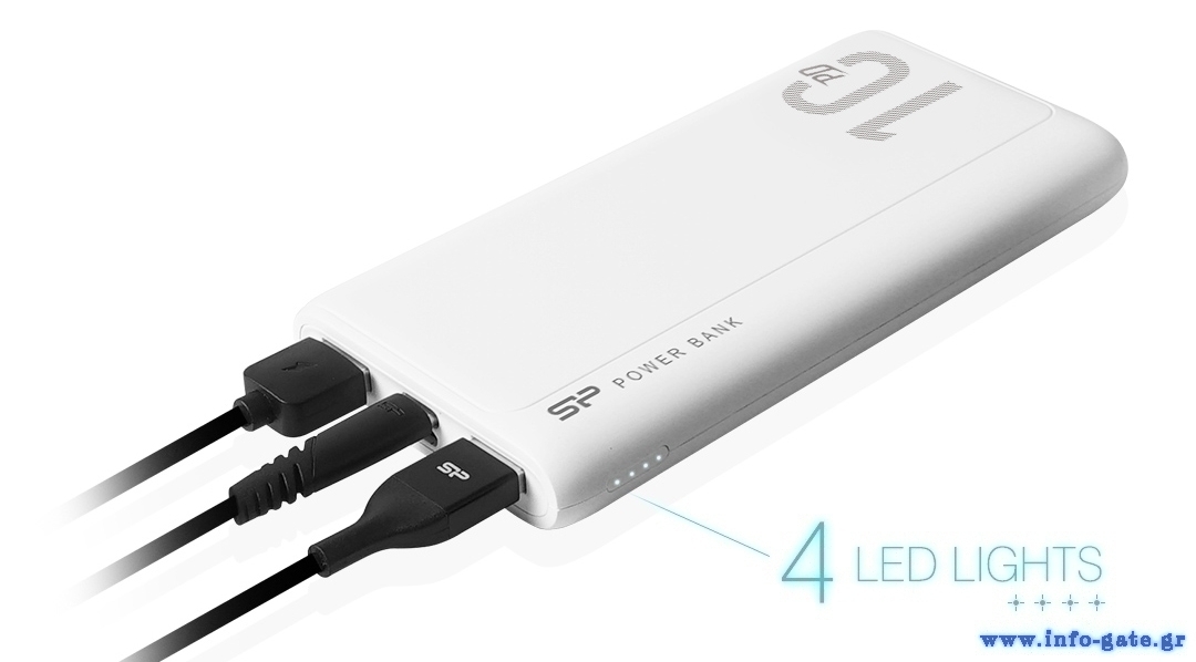 Με το power bank QP15 της Silicon Power το άγχος της εξαντλημένης μπαταρίας θα είναι παρελθόν. Η μπαταρία μεγάλης χωρητικότητας 10.000mAh, είναι σε θέση να φορτίσει το smartphone σας ή όποια άλλη συμβατή συσκευή, 2-4 φορές με μια μόνο φόρτιση. Διαθέτει 2 θύρες εξόδου USB και 1 θύρα εξόδου/εισόδου USB Type-C (PD) με συνολική απόδοση έως 3A. Επιπλέον, εξοπλίζεται με 4 LEDS indicators για την ένδειξη της μπαταρίας και φορτίζει μέσω θύρας USB Type-C ή Micro USB.
