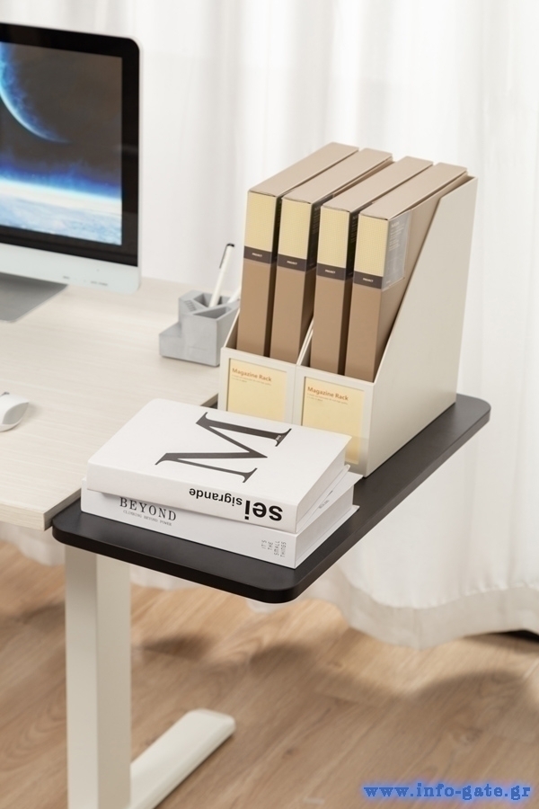 Το ράφι γραφείου DET-4 της Brateck προσφέρει επιπλέον χώρο αποθήκευσης, ελευθερώνοντας τον χώρο στην επιφάνεια εργασίας του γραφείου. Χάρη στην επιφάνεια ξύλου που διαθέτει, ταιριάζει άψογα σε γραφεία με ξύλινες επιφάνειες εργασίας. Η τοποθέτηση του γίνεται εύκολα με βίδες στην άκρη της επιφάνειας του γραφείου.