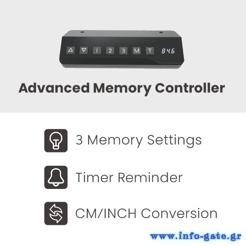 Το ύψος του γραφείου μπορεί να ρυθμιστεί με την χρήση των πλήκτρων στο χειριστήριο ελέγχου, επιτρέποντας σας να εργαστείτε σε καθιστή ή όρθια στάση, ανάλογα με τις ανάγκες σας. Ο ισχυρός κινητήρας ανύψωσης παρέχει ομαλή, σταθερή λειτουργία με μηδενικούς κραδασμούς κατά τις μεταβάσεις.