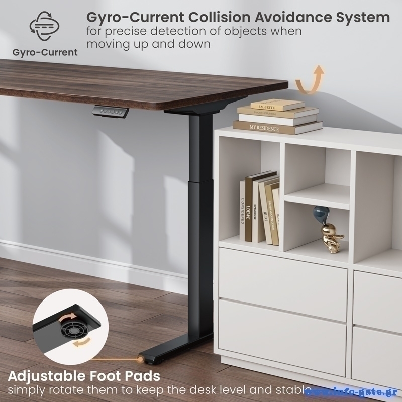 Μπορείτε εύκολα να ρυθμίσετε το ύψος του γραφείου χρησιμοποιώντας τα πλήκτρα ελέγχου, επιτρέποντάς σας να εργαστείτε είτε καθιστοί είτε όρθιοι, ανάλογα με τις ανάγκες σας.