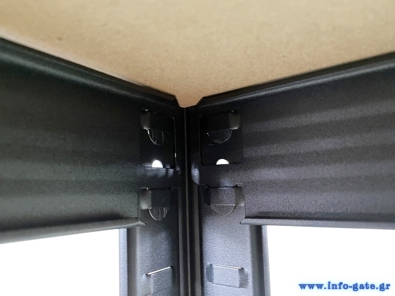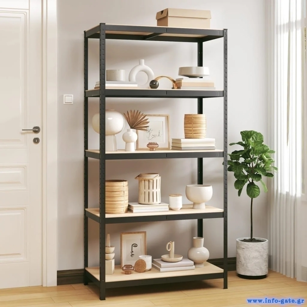 Μεταλλική ραφιέρα με 5 ράφια μοριοσανίδας πάχους 4mm που προσφέρουν μεγάλη αντοχή βάρους έως 175kg ανά ράφι.