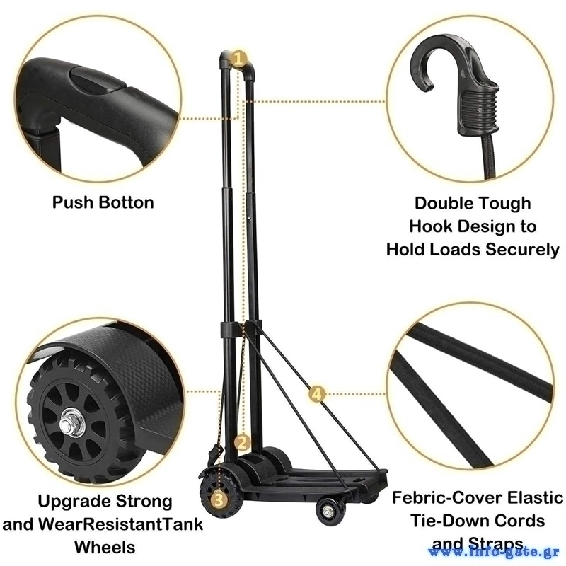 Πτυσσόμενο καρότσι με ποιοτική κατασκευή εξαιρετικού φινιρίσματος, ιδανικό για την μεταφορά φορτίων με βάρος έως 50 kg.