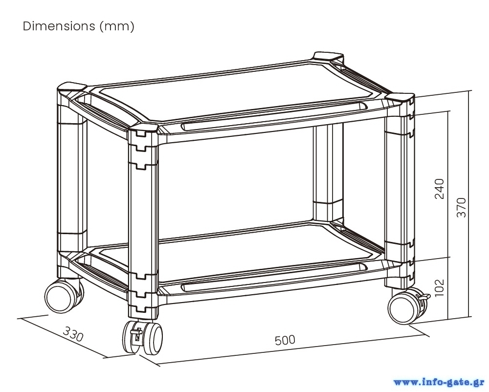 Διαθέτει ροδάκια με μηχανισμό κλειδώματος για την εύκολη μεταφορά της ραφιέρας.