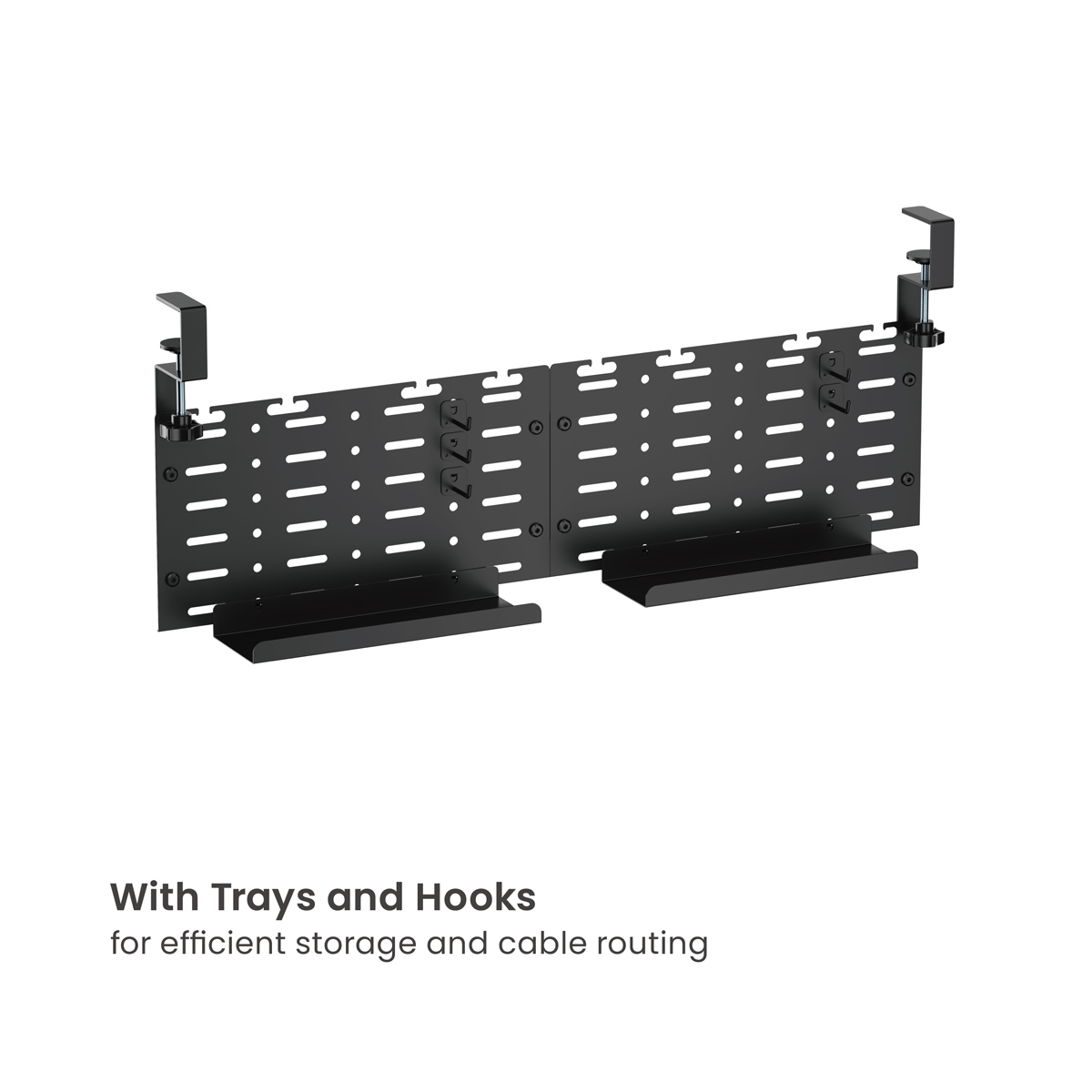 Αυτό το ράφι οργάνωσης καλωδίων της Brateck τοποθετείται με σφικτήρα στην επιφάνεια του γραφείου, προσφέροντας καλύτερη οργάνωση των καλωδίων κάτω από το γραφείο. Με αυτό τον τρόπο ο χώρος του γραφείου διατηρείται καθαρός και τακτοποιημένος.