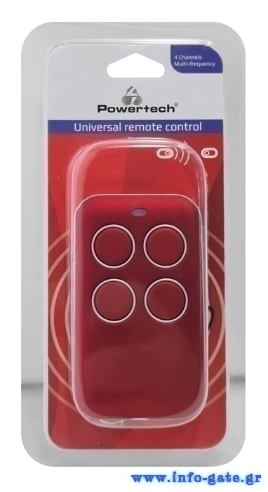 Χειριστήριο ραδιοσυχνοτήτων RF πολλαπλών συχνοτήτων κατάλληλο για τηλεχειρισμούς γκαραζόπορτας, ρολών, κλπ. Εύκολη αντιγραφή Face to Face, γρήγορος προγραμματισμός. Διαθέτει 4 πλήκτρα για προγραμματισμό 4 καναλιών.