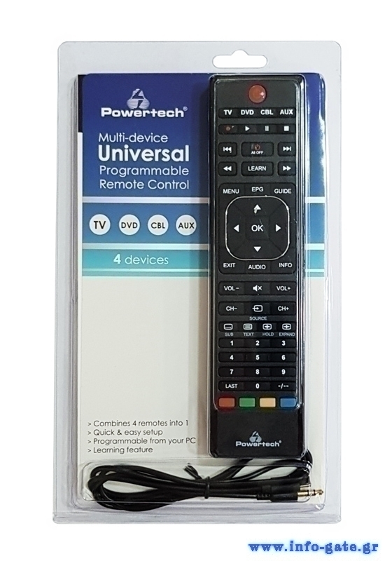 POWERTECH Χειριστήριο PT-744, προγραμματιζόμενο μέσω Η/Υ, TV/DVD/CBL/AUX