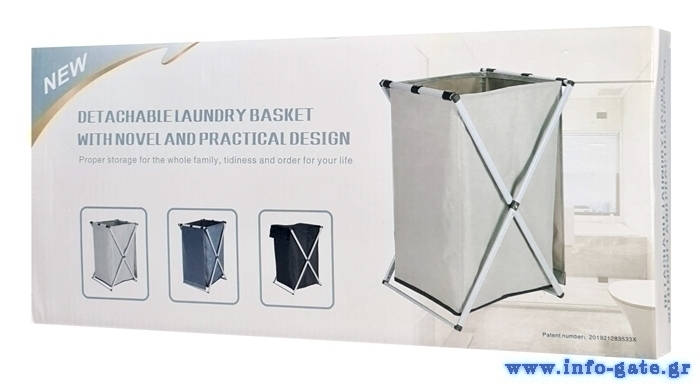 Καλάθι απλύτων CLN-004 με 1 σάκο, υφασμάτινο, 60x38x35mm, γκρι