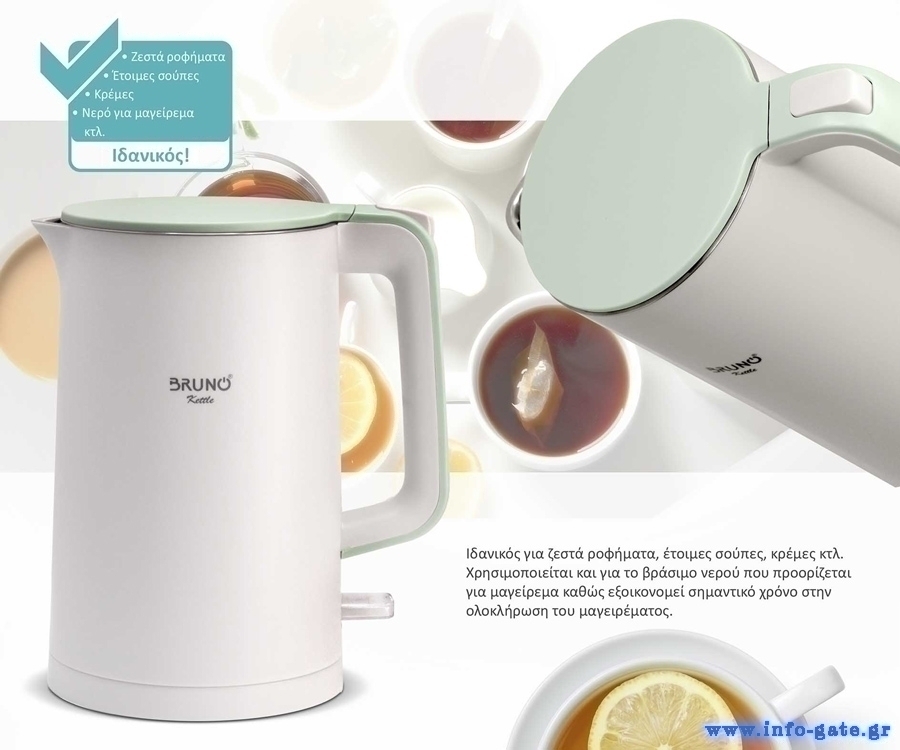 Ο βραστήρας BRUNO BRN-0140 καλύπτει γρήγορα και εύκολα κάθε σας ανάγκη όπου απαιτείται ζεστό νερό για ροφήματα, έτοιμες σούπες, κρέμες κτλ. ή για μαγείρεμα και κάθε άλλη χρήση.