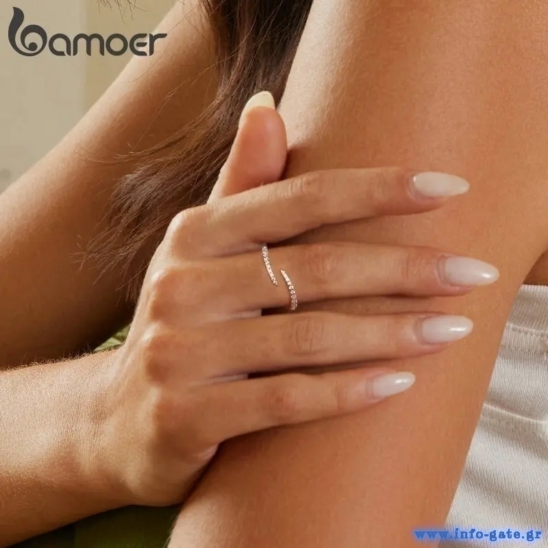 BAMOER δαχτυλίδι BSR470-AE, κυβική ζιρκόνια, ανοιγόμενο, ασήμι 925 ασημί