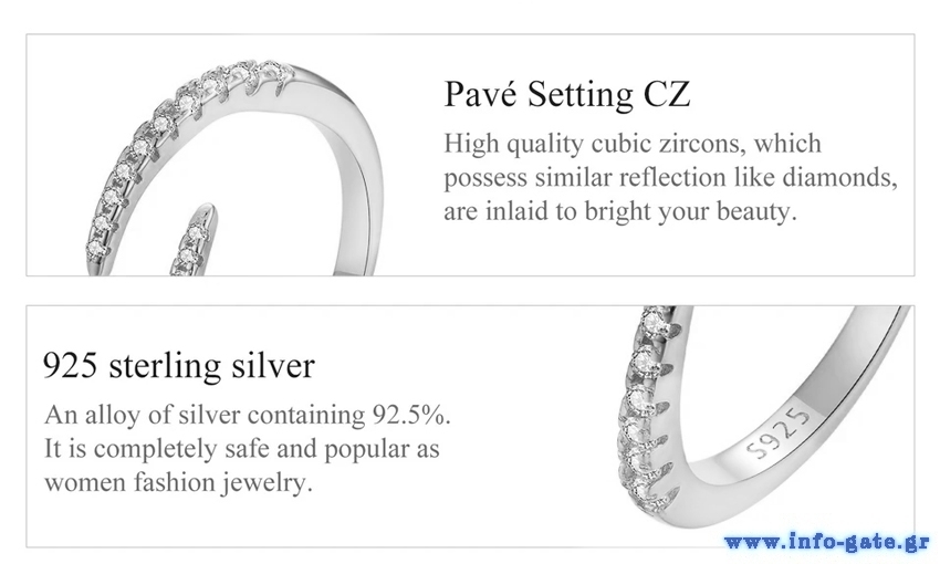 Κατασκευάζεται από ασήμι 925 και το μέγεθος του είναι ρυθμιζόμενο ώστε να προσαρμόζεται ιδανικά σε κάθε δάχτυλο.