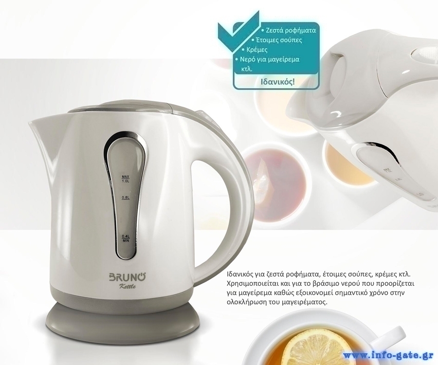 Ο βραστήρας BRUNO BRN-0141 καλύπτει γρήγορα και εύκολα κάθε σας ανάγκη όπου απαιτείται ζεστό νερό για ροφήματα, έτοιμες σούπες, κρέμες κτλ., ή για μαγείρεμα και κάθε άλλη χρήση.