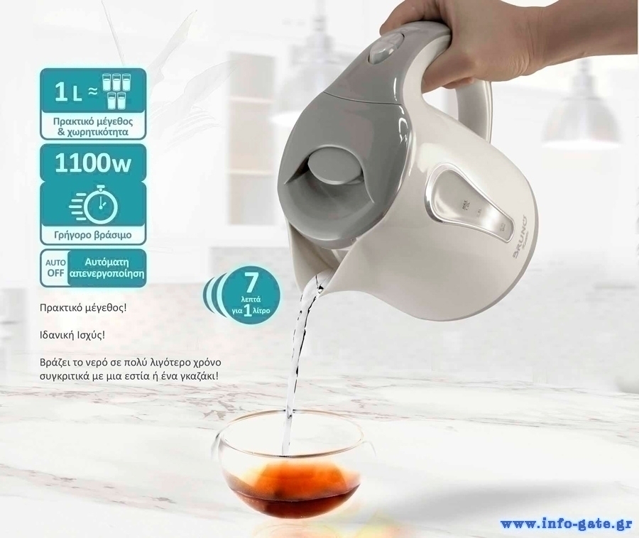 Με πρακτική χωρητικότητα 1 λίτρου και ιδανική ισχύ 1100W για γρήγορο βρασμό μέσα σε λίγα λεπτά.
