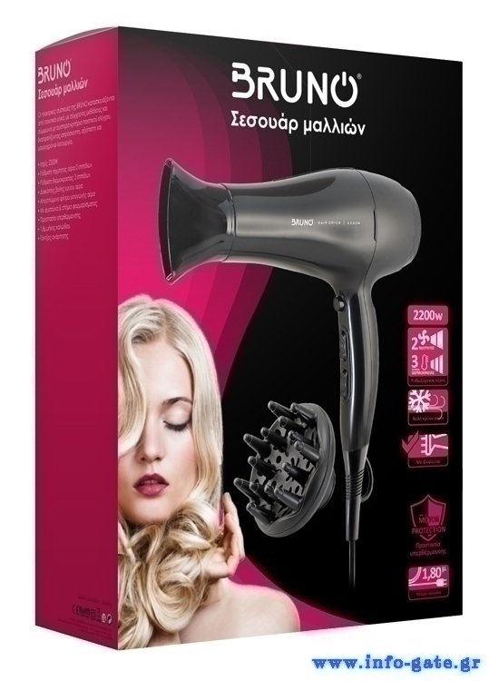 BRUNO σεσουάρ μαλλιών BRN-0154, 2200W, με φυσούνα, μαύρο