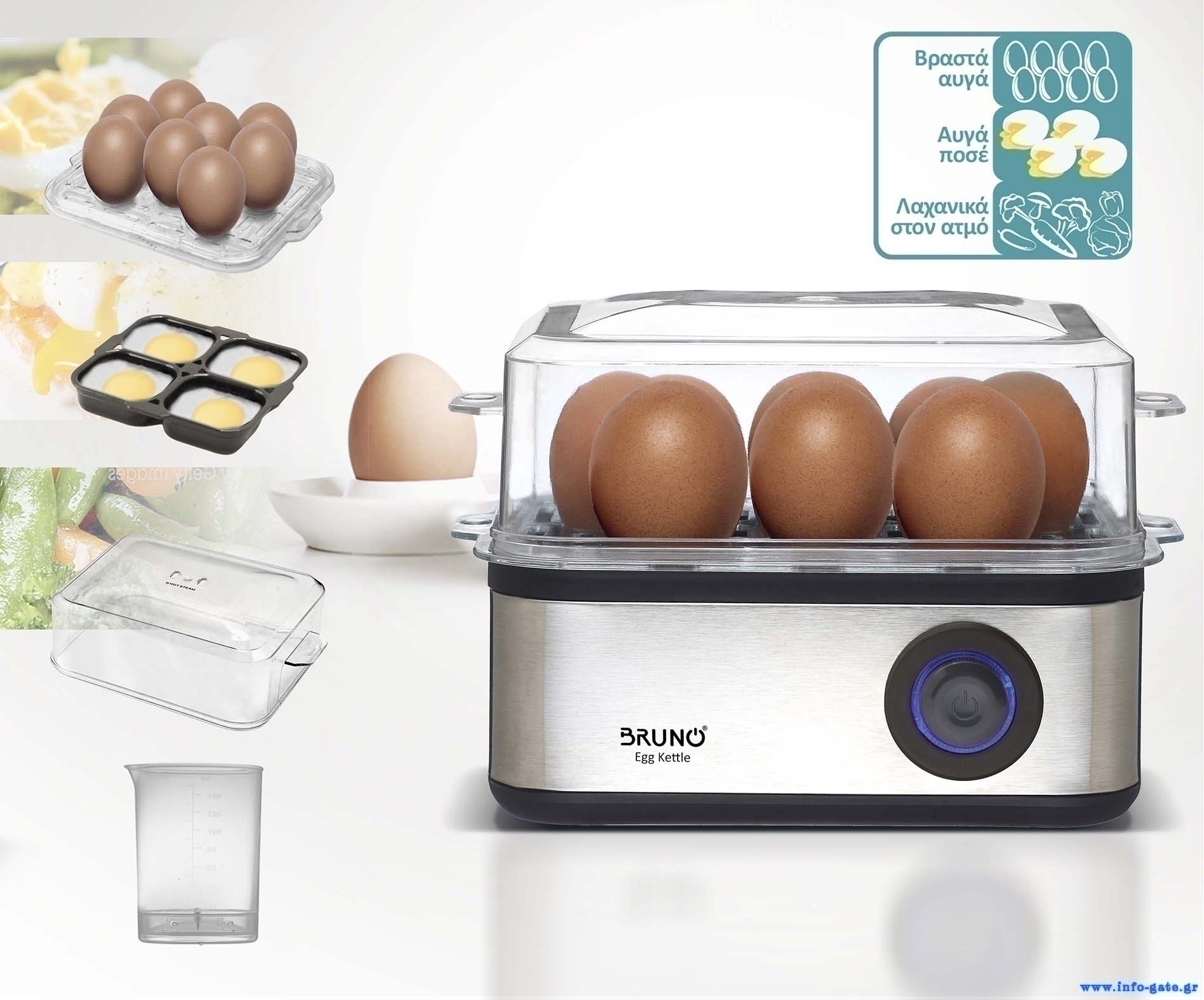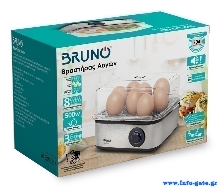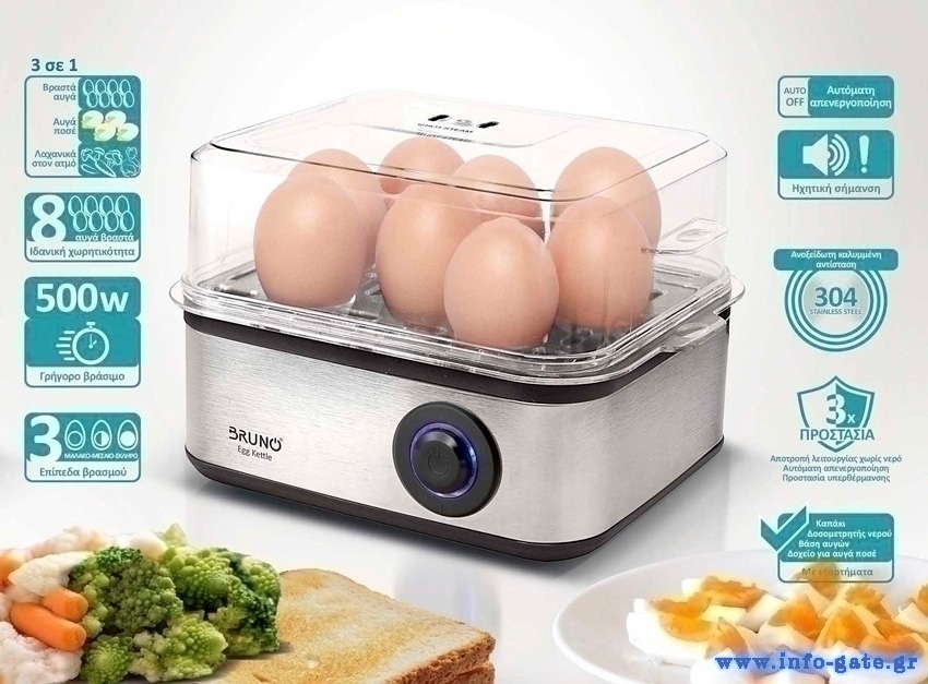 BRUNO βραστήρας αυγών 8 θέσεων BRN-0156, 500W, ανοξείδωτος