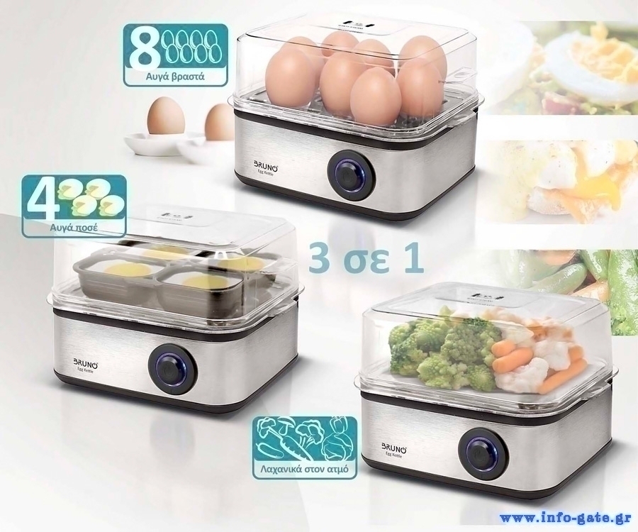 Λειτουργίες: ιδανική για Βράσιμο αυγών, για αυγά ποσέ και λαχανικά στον ατμό (Συνδυάζει 3 λειτουργίες σε 1 συσκευή).