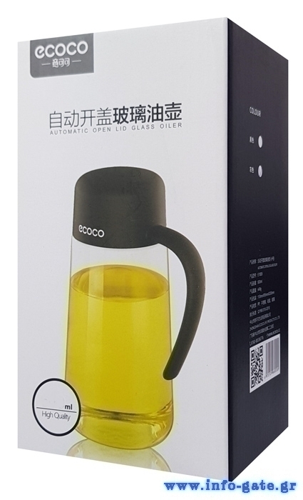 Γυάλινο δοχείο λαδιού-ξιδιού της Ecoco με μεγάλη χωρητικότητα 1000ml. Διαθέτει ειδικά σχεδιασμένο καπάκι με αυτόματο άνοιγμα και εργονομικό σχεδιασμό με άνετη λαβή και αντιολισθητικό υλικό σιλικόνης στη βάση.