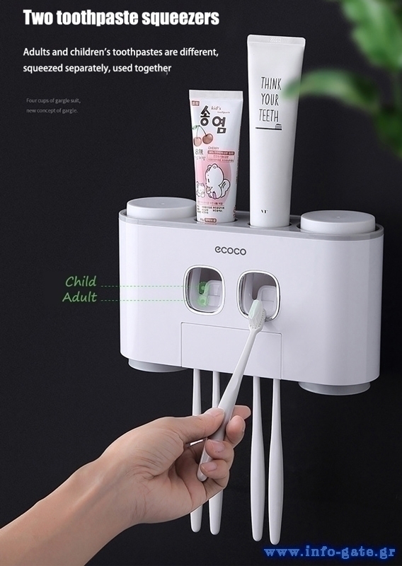 ECOCO Διανεμητής οδοντόκρεμας με βάσεις οδοντόβουρτσας και ποτήρια E1802