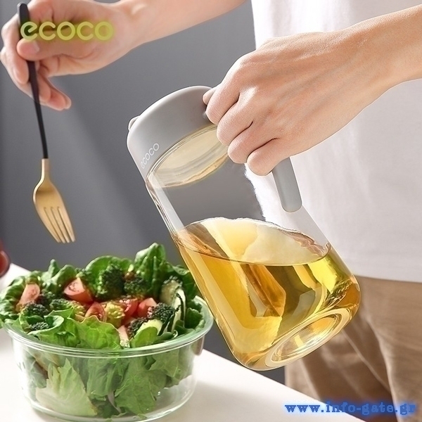 Γυάλινο δοχείο λαδιού-ξιδιού της Ecoco με μεγάλη χωρητικότητα 600ml. Διαθέτει ειδικά σχεδιασμένο καπάκι με αυτόματο άνοιγμα και εργονομικό σχεδιασμό με άνετη λαβή και αντιολισθητικό υλικό σιλικόνης στη βάση.