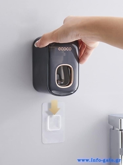 Τοποθετείται εύκολα στον τοίχο με αυτοκόλλητη βάση η οποία αποσπάται από τον διανεμητή. Με τον διανεμητή θα βάλετε εύκολα οδοντόκρεμα στην οδοντόβουρτσα σας, σπρώχνοντας την οδοντόβουρτσα στην ειδική εσοχή του διανεμητή.