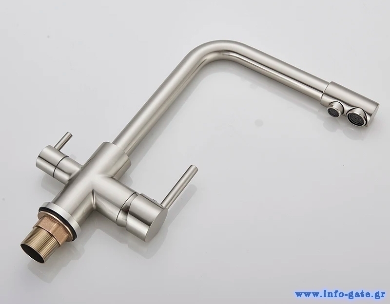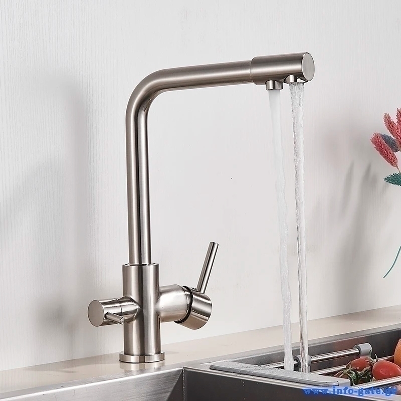 Αυτή η εκπληκτική μπαταρία πάγκου κουζίνας διαθέτει τρίοδο σχεδιασμό για τη σύνδεση με φίλτρο νερού και το δίκτυο παροχής ζεστού και κρύου νερού. Έτσι, μπορείτε να απολαμβάνετε καθαρό, φιλτραρισμένο νερό και να επιλέξετε παράλληλα ανάμεσα σε ζεστό και κρύο νερό με τους διακόπτες.