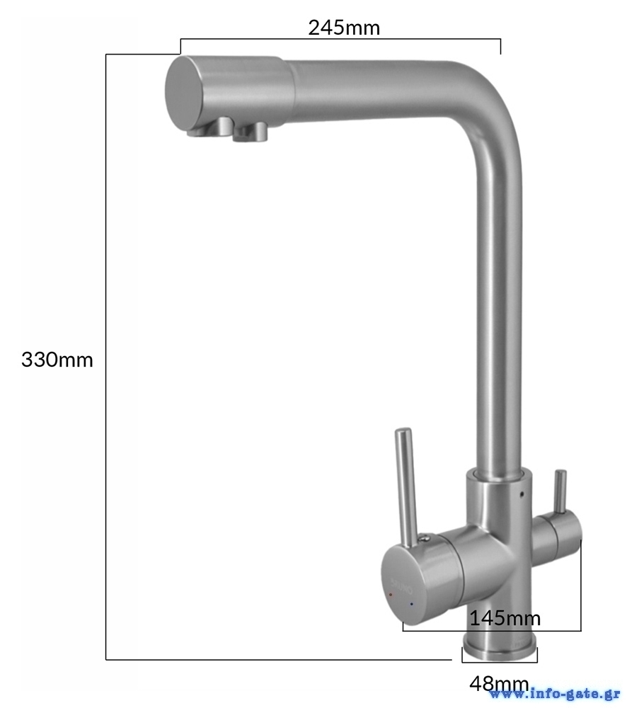 -Μήκος σωληνώσεων: Κρύου/ζεστού νερού: ~40cm, Φιλτραρισμένου νερού: ~25cm