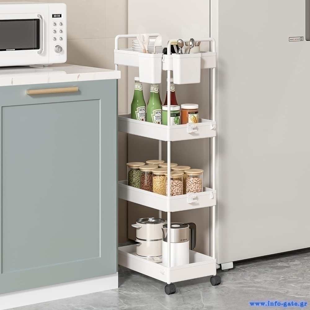 Τρόλει κουζίνας με 4 ράφια για την αποθήκευση και οργάνωση τροφίμων και αντικειμένων.
