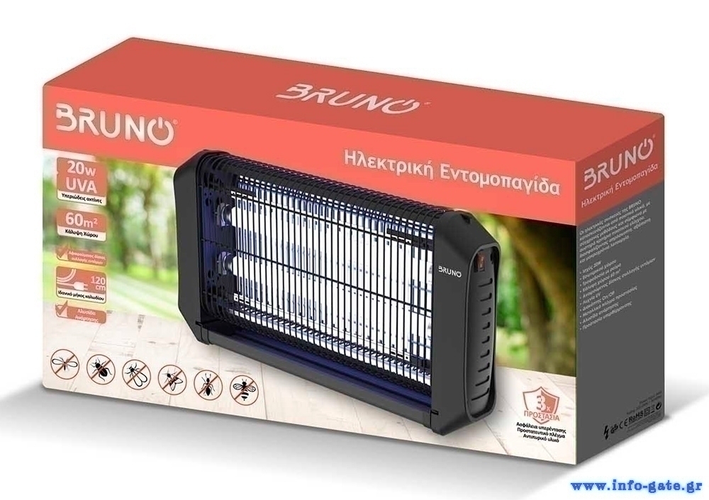 BRUNO ηλεκτρική εντομοπαγίδα BRN-0186 με UV λυχνία, 20W, μαύρη