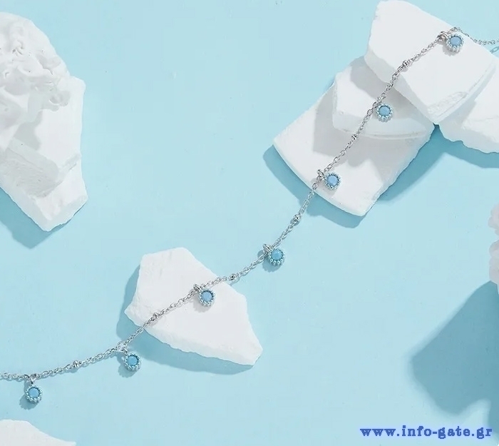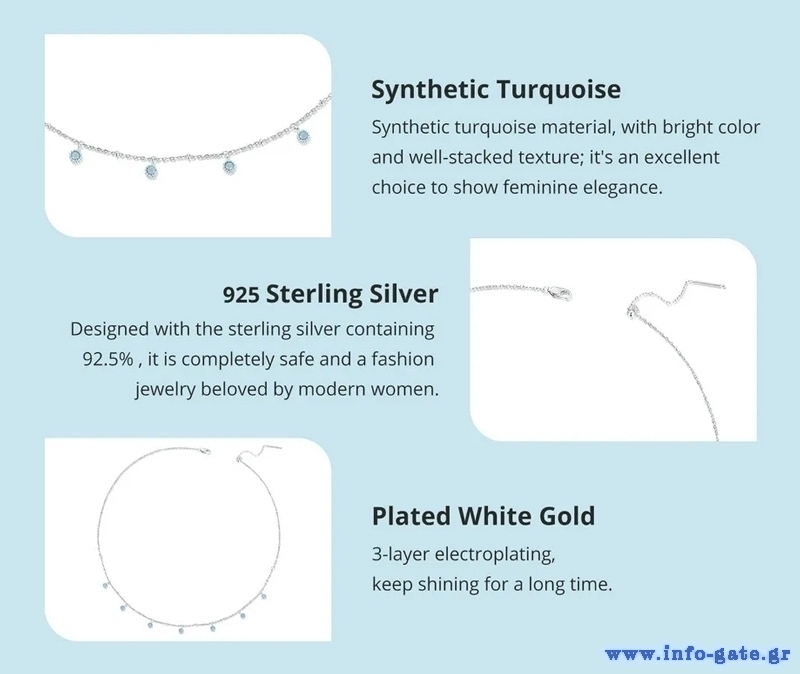Εντυπωσιακό κολιέ Bamoer, με ιδιαίτερο και μοναδικό design. Διαθέτει ασημί αλυσίδα, διακοσμημένη με συνθετικές τιρκουάζ χάντρες.