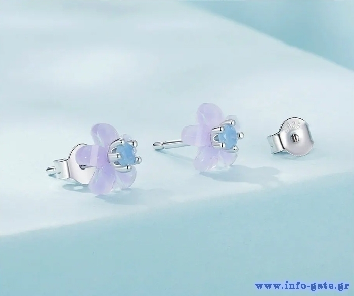 Καρφωτά σκουλαρίκια με σχήμα λουλουδιού Bamoer, κατασκευασμένα από ασήμι 925, διακοσμημένα με οπάλ πέτρα.