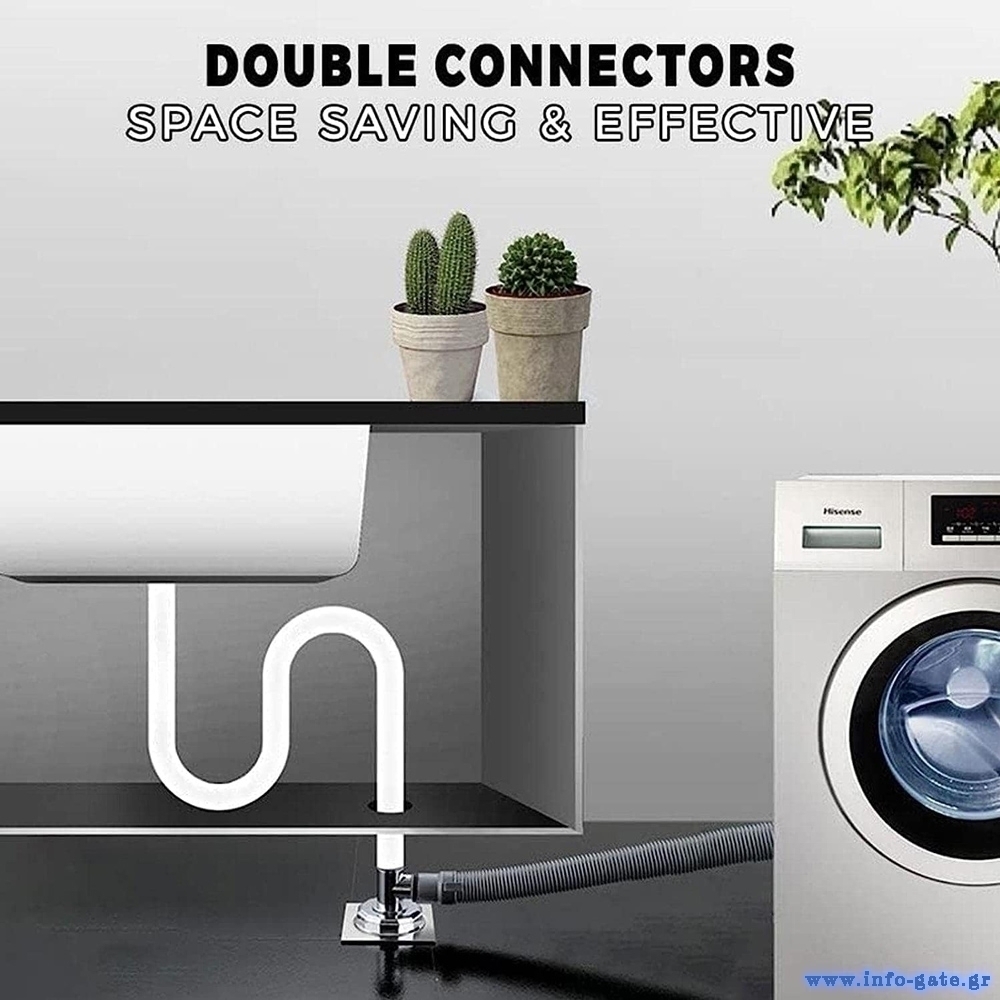 Διαθέτει συνολικά 3 υποδοχές, 2 για σύνδεση με σωλήνα και 1 για σύνδεση με σιφώνι δαπέδου.