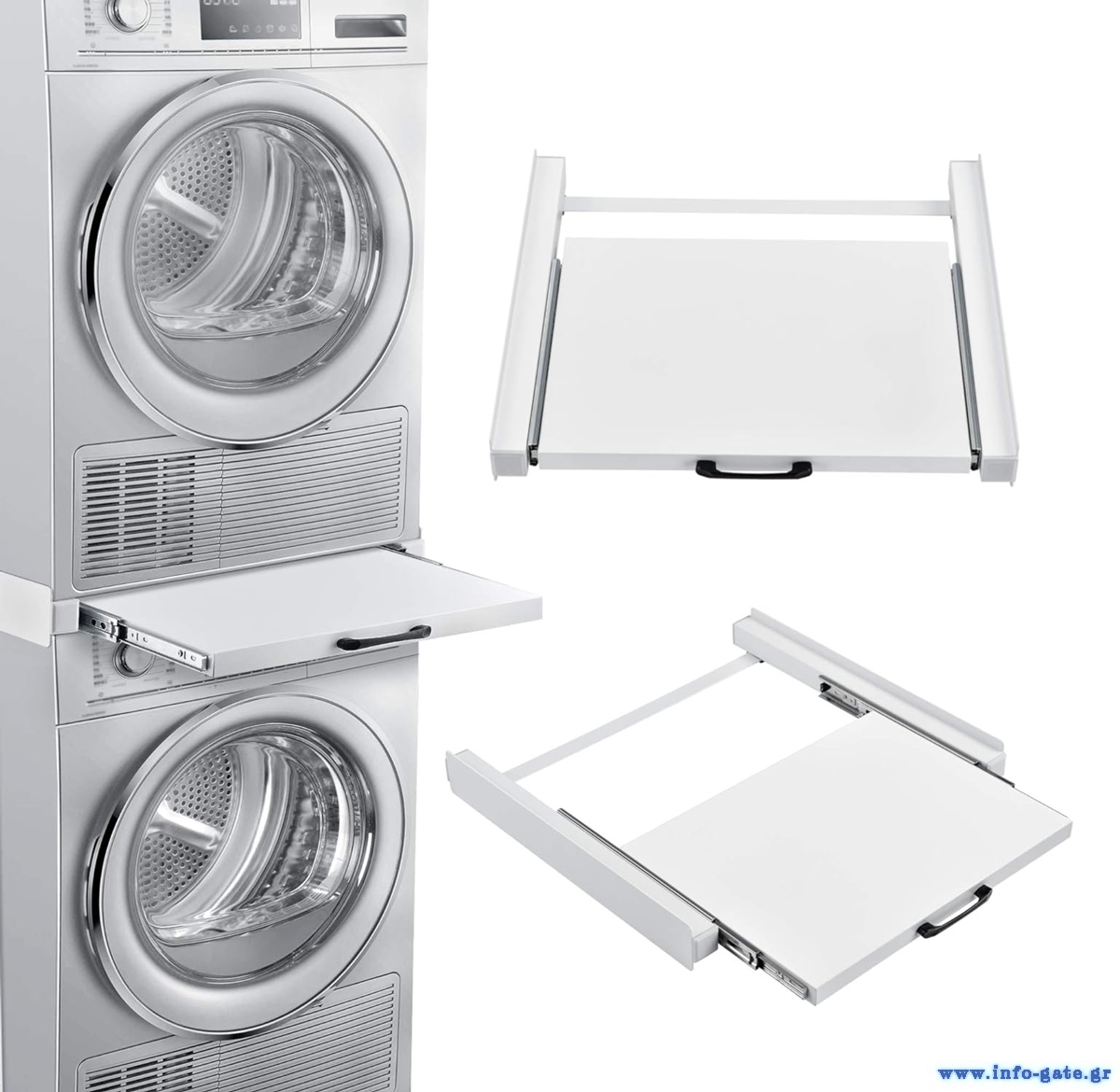 Βάση στήριξης για την σύνδεση πλυντηρίου/στεγνωτηρίου από την Home Use. Αποτελεί ιδανική λύση για εξοικονόμηση χώρου, τοποθετώντας το στεγνωτήριο πάνω από το πλυντήριο.