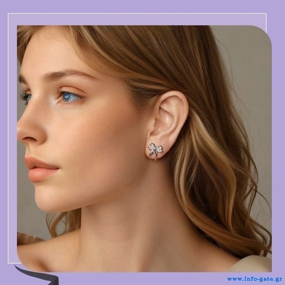 Καρφωτά σκουλαρίκια Bamoer σε σχήμα φιόγκου, διακοσμημένα με αστραφτερή κυβική ζιρκόνια, λευκού χρώματος.