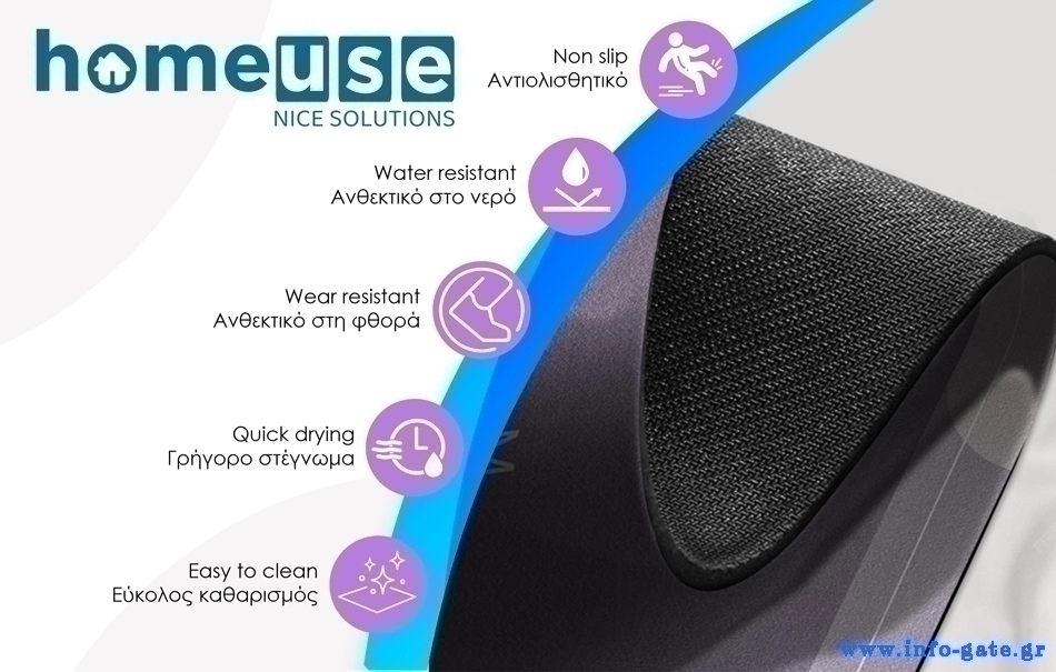 Πατάκι HOME USE για την κουζίνα, με αντιολισθητική επιφάνεια, για επιπλέον σταθερότητα. Είναι κατασκευασμένο από ύφασμα με καουτσούκ επιφάνεια στο κάτω μέρος, που προσφέρουν εξαιρετική αντοχή στη φθορά και το νερό.