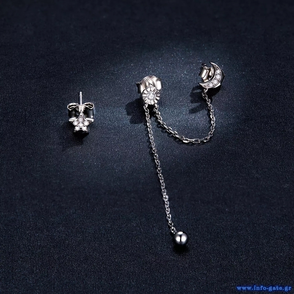 Μοντέρνα σκουλαρίκια καρφωτά Bamoer σε σχέδιο φεγγάρι και αστέρι, κατασκευασμένα από ασήμι 925 και διακοσμημένα με αστραφτερή κυβική ζιρκόνια.