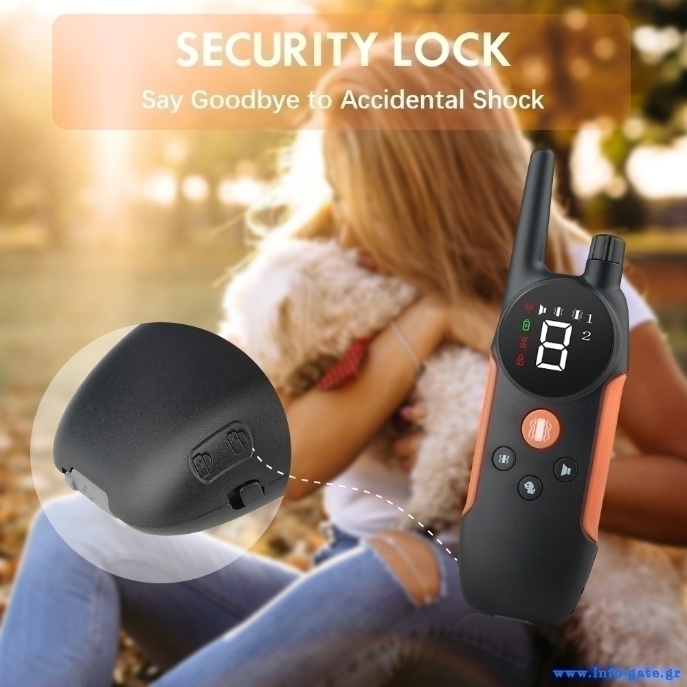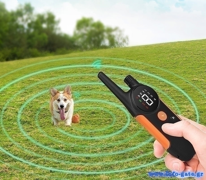 POWERTECH ηλεκτρικό κολάρο εκπαίδευσης σκύλου PT-1398 με ασύρματο χειριστήριο, εμβέλεια 800m